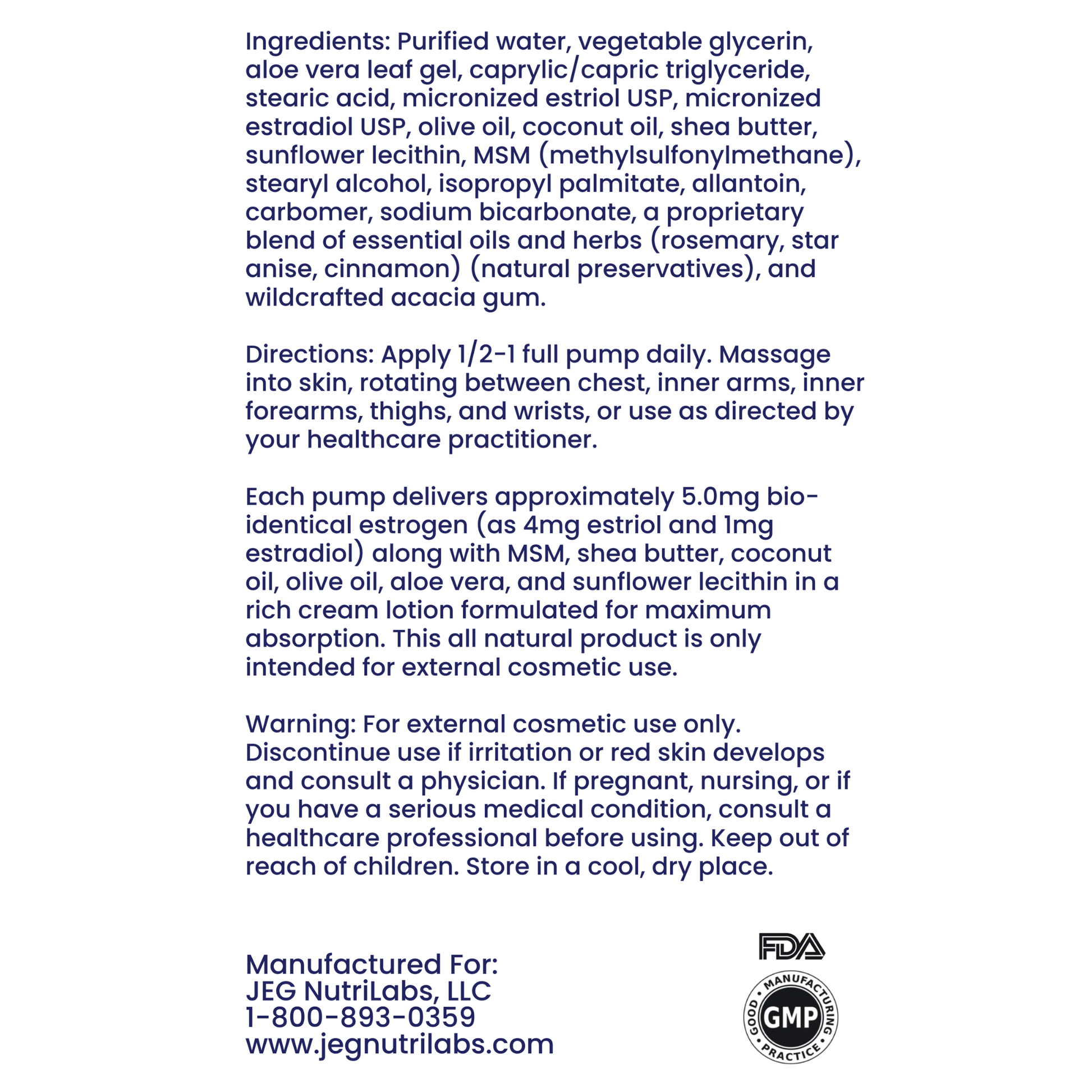 - Provides approximately 5.0 mg Bioidentical Estrogen per pump (4 mg Estriol + 1 mg Estradiol)*