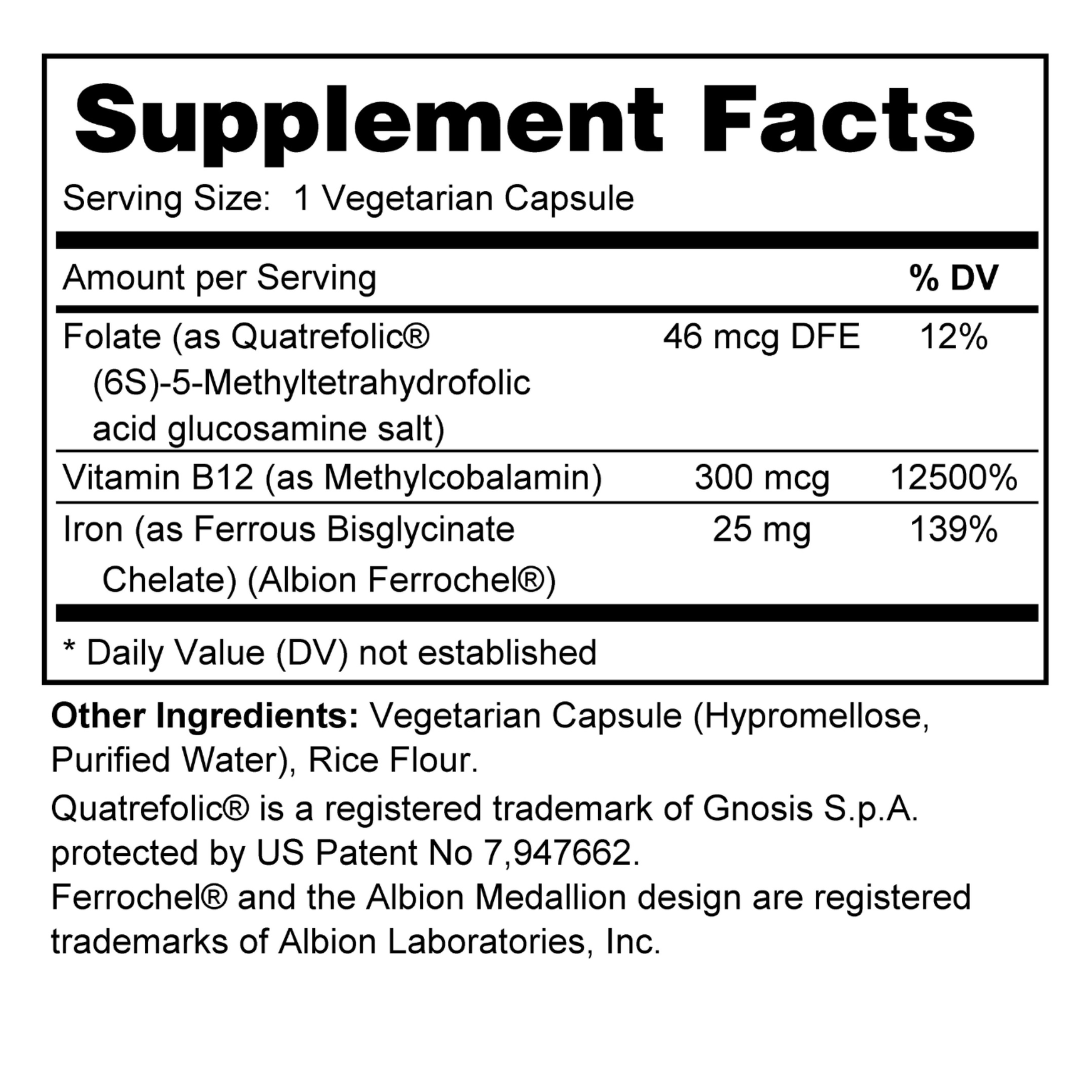 - Balanced Nutrient Support – Includes methylated B12 and Folate which help support healthy iron metabolism and utilization.*