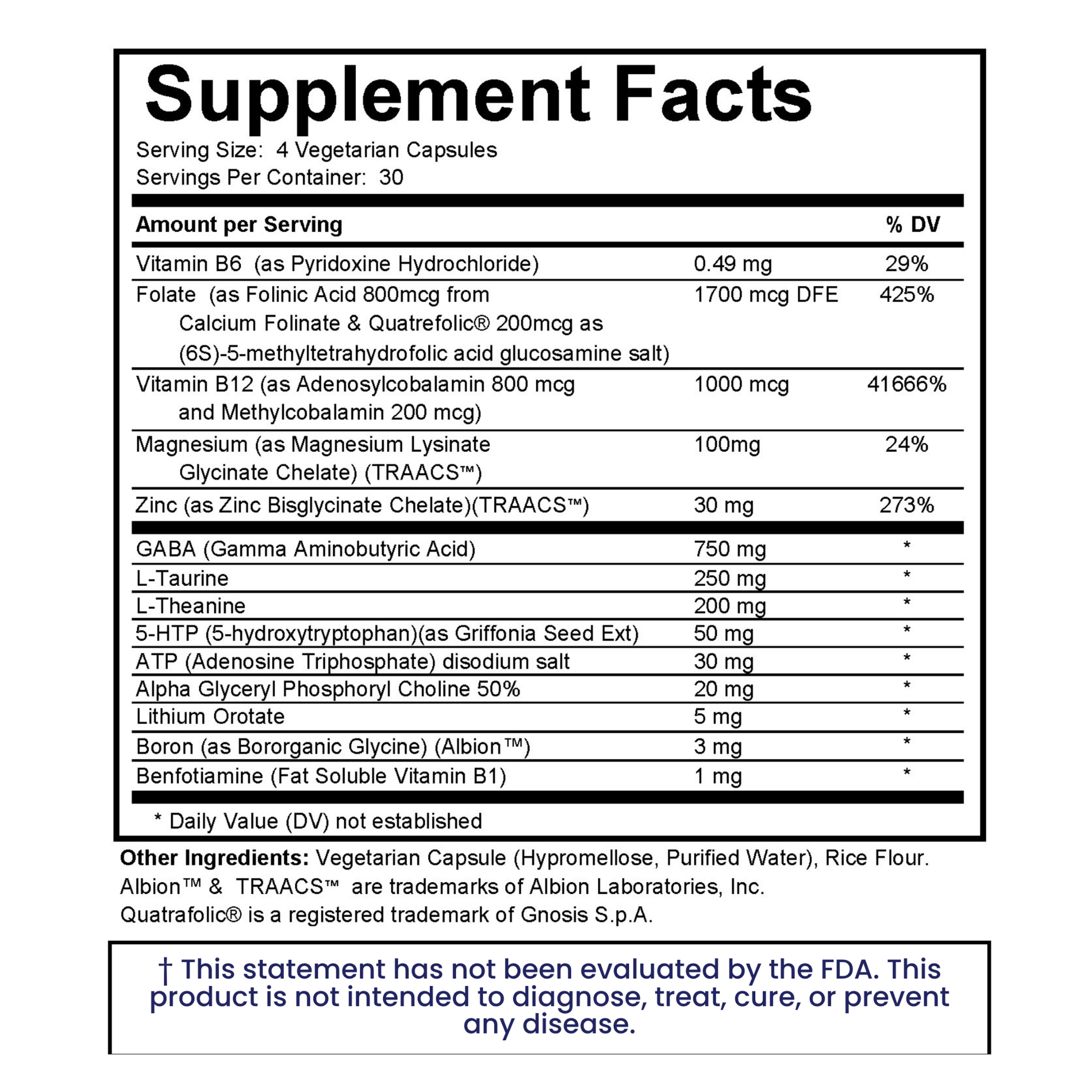 - Features Folinic Acid + Methyl-Folate (80/20) and Adenosyl-B12 + Methyl-B12 (80/20)*