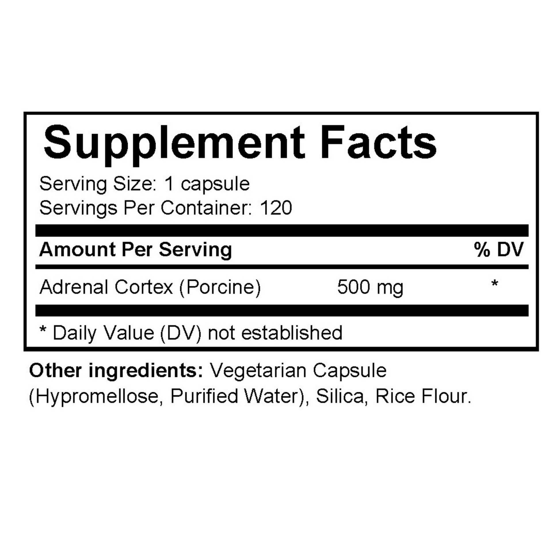 - Provides 500 mg of porcine adrenal cortex per capsule*