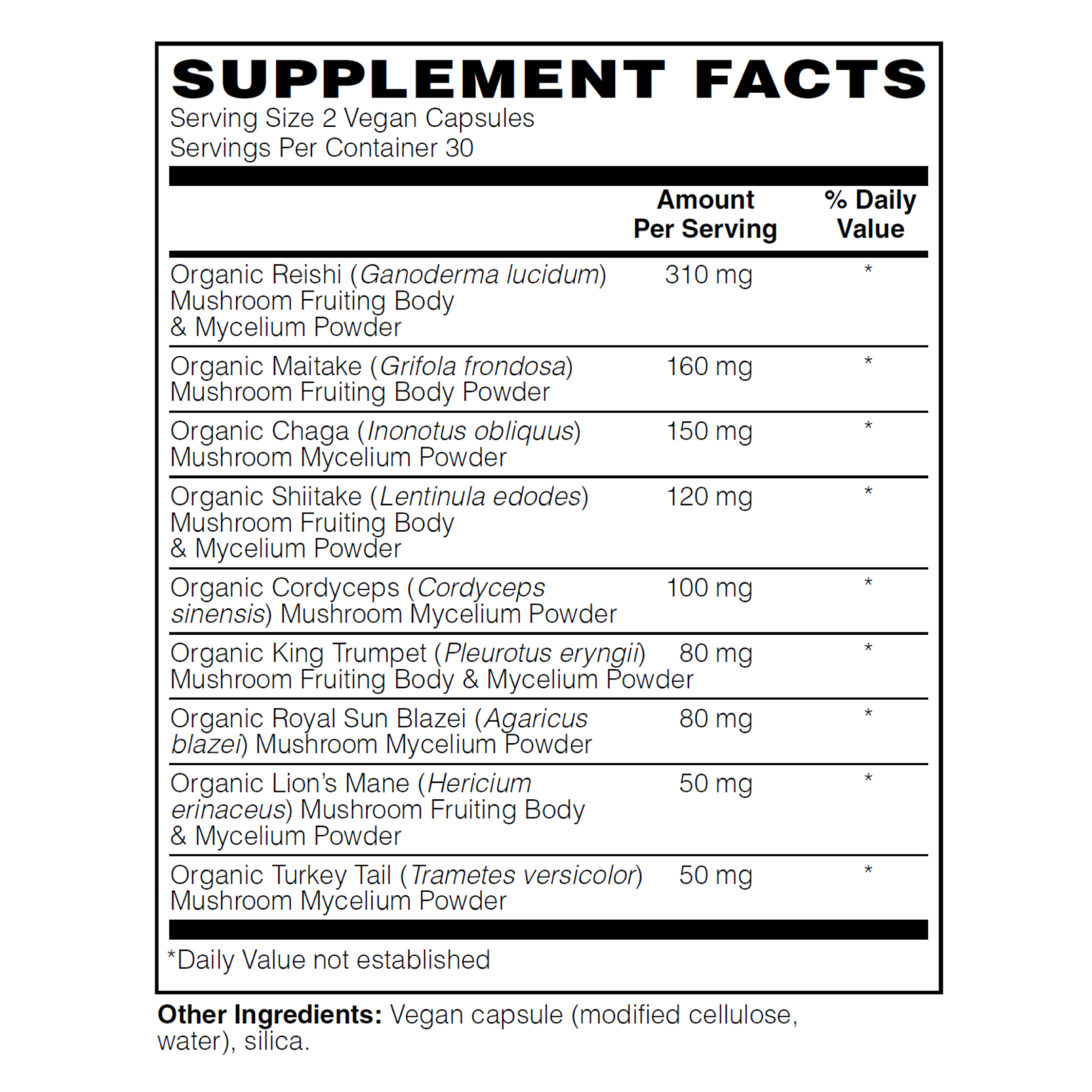 - Contains nine organic mushroom species for broad-spectrum benefits*