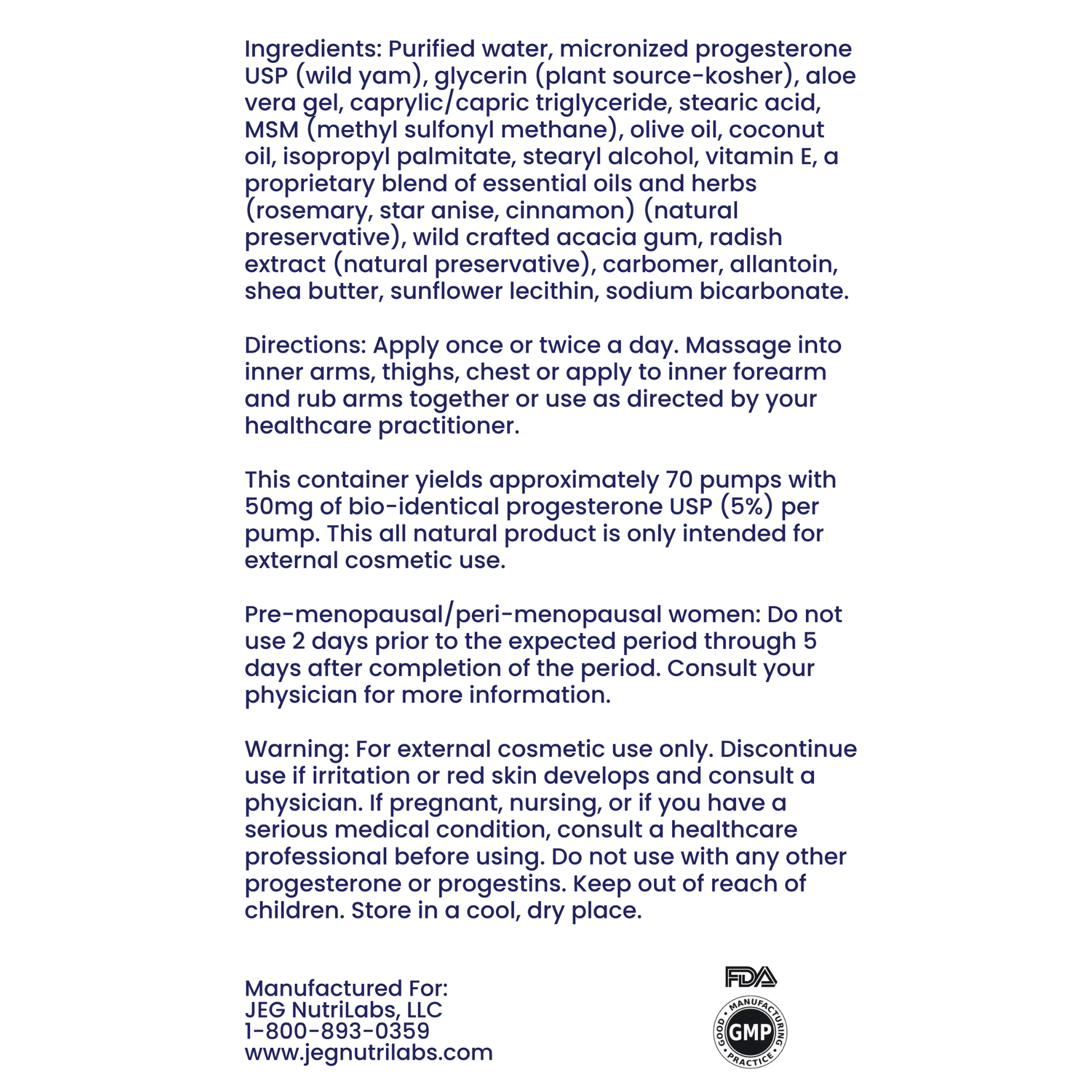 - Delivers 50mg of bio-identical progesterone USP per pump (5%)*